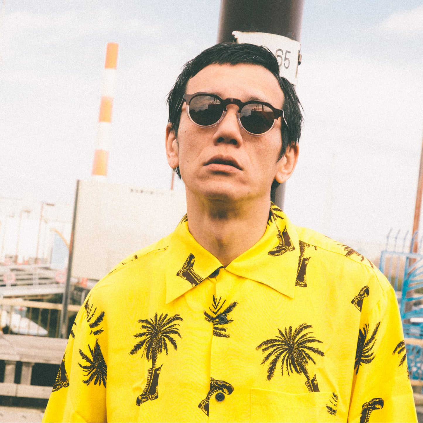 この様な型は、顔の中心に眼鏡が寄ってしまいがち(顔幅広めの日本人は特に)。そうならない様、デザイナーがレンズ/ブリッジ/ヨロイ、それぞれに少しずつ幅を出しながら、絶妙のバランスでひたすら調整し、設計したモデル。