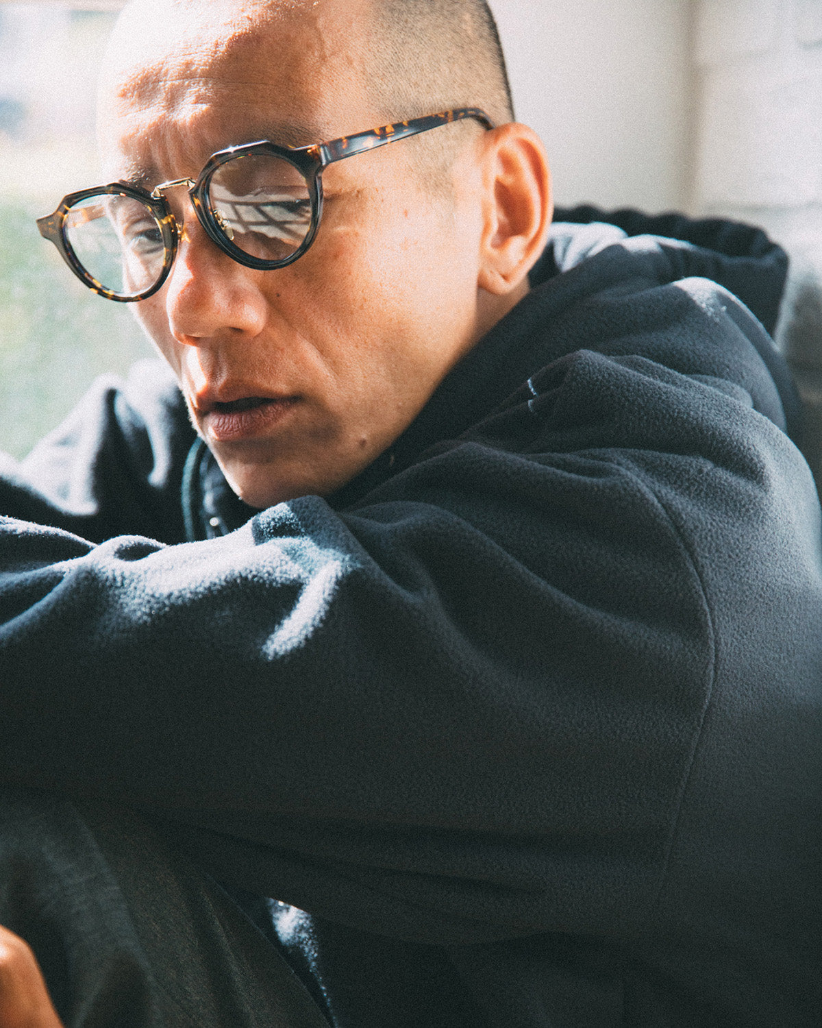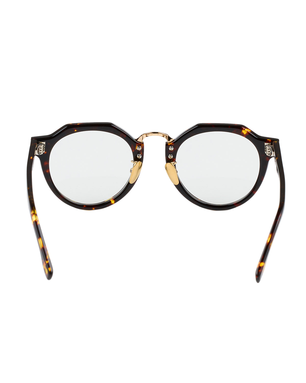肉厚なアセテートとチタンメタルの質感が織りなす美しいコンビネーション