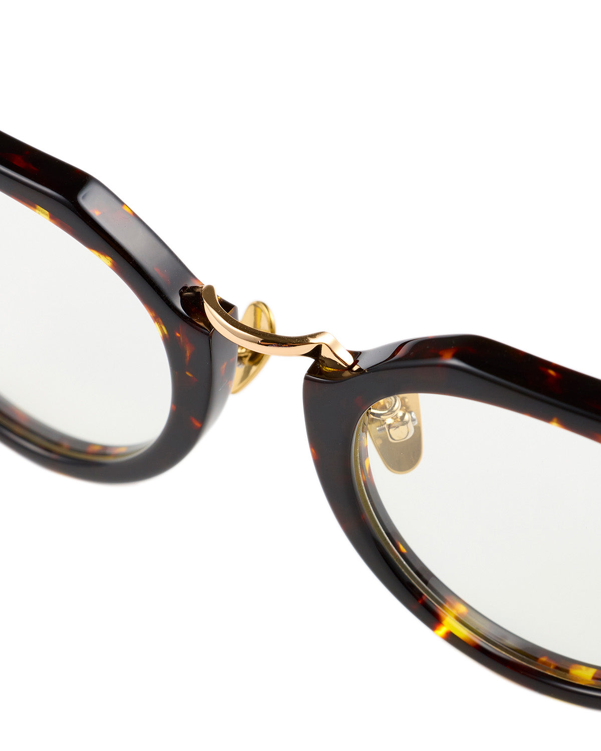 アセテートの重厚感とチタンメタルの滑らかな質感がバランス良く調和した仕上がりとなっています。