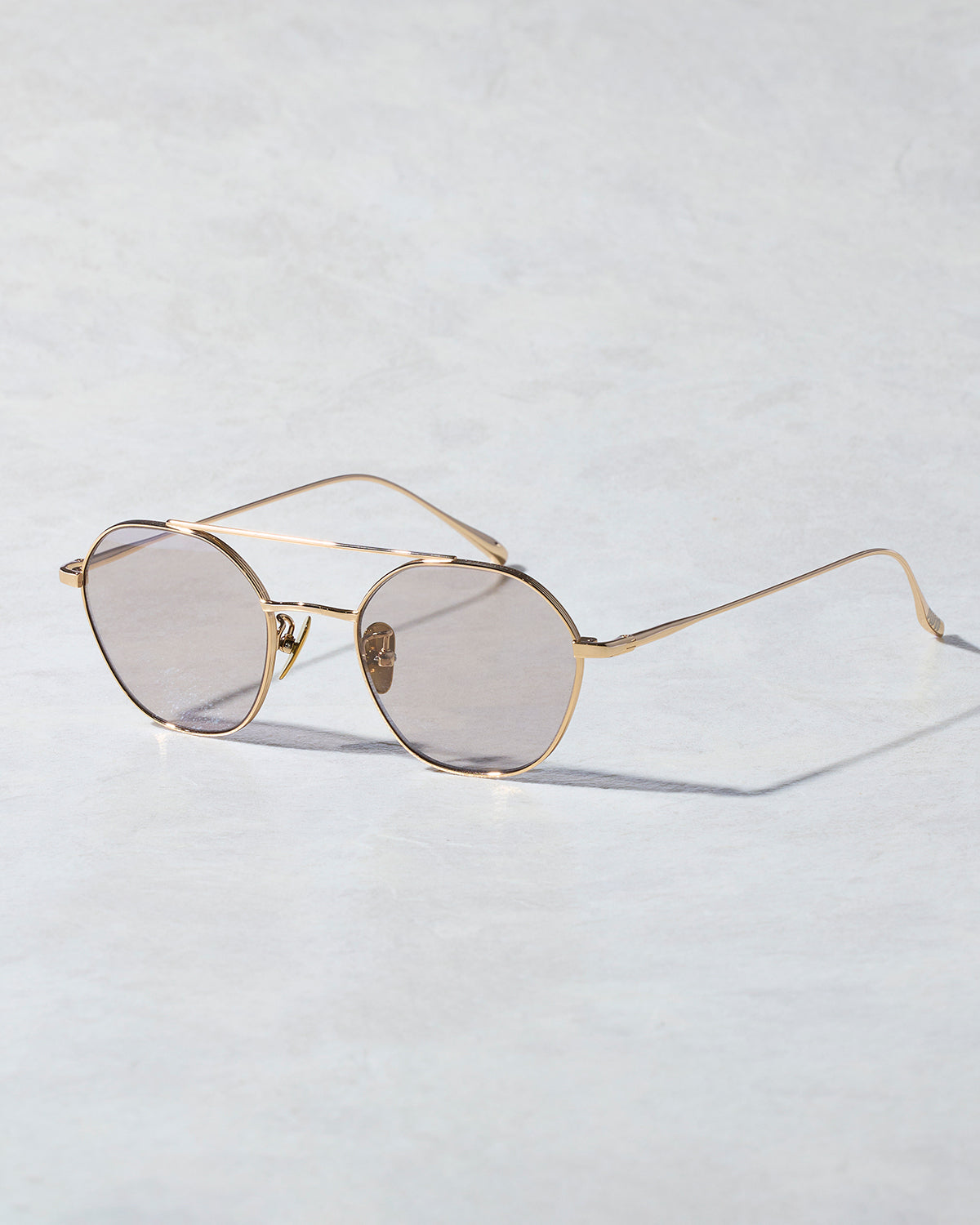 角の取れた緩やかな多角形レンズを採用し、ヴィテージアイウェアに感じる雰囲気を残しつつも馴染みやすく掛けやすいシルエットに仕上げました。