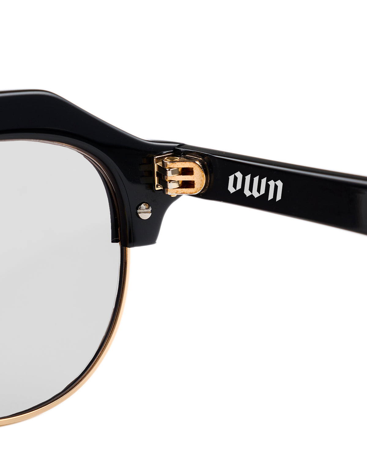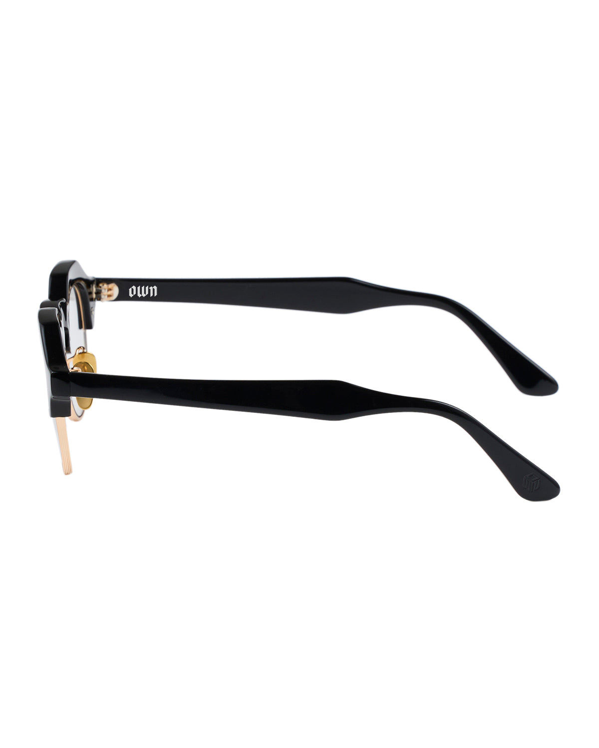 クラウンパント型のブローラインに、彫金を施したアンダーリムを配すことにより、武骨さの中に気品が見える仕上がりに。