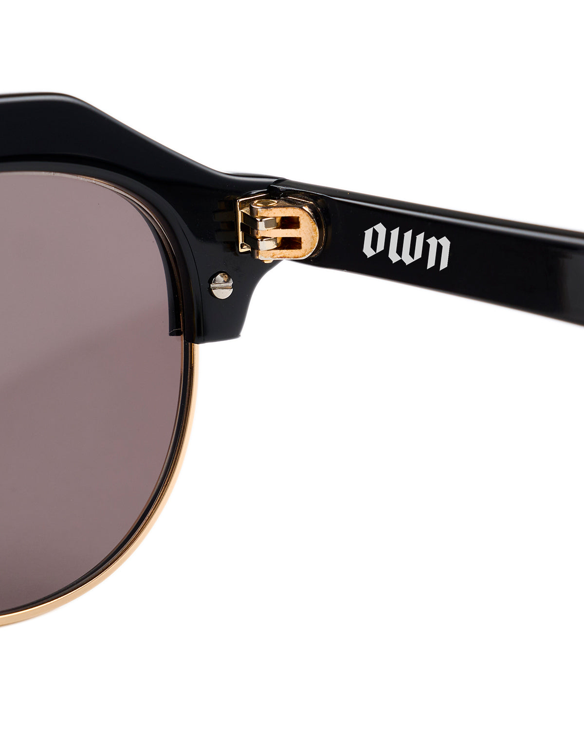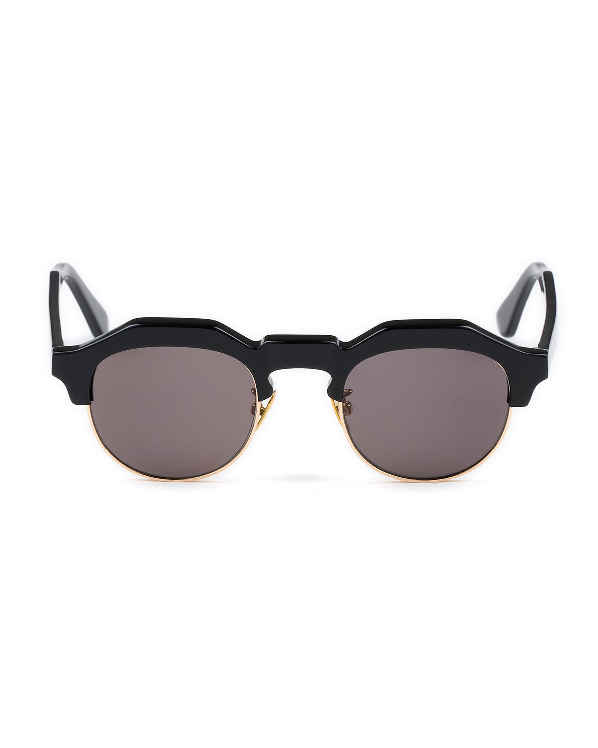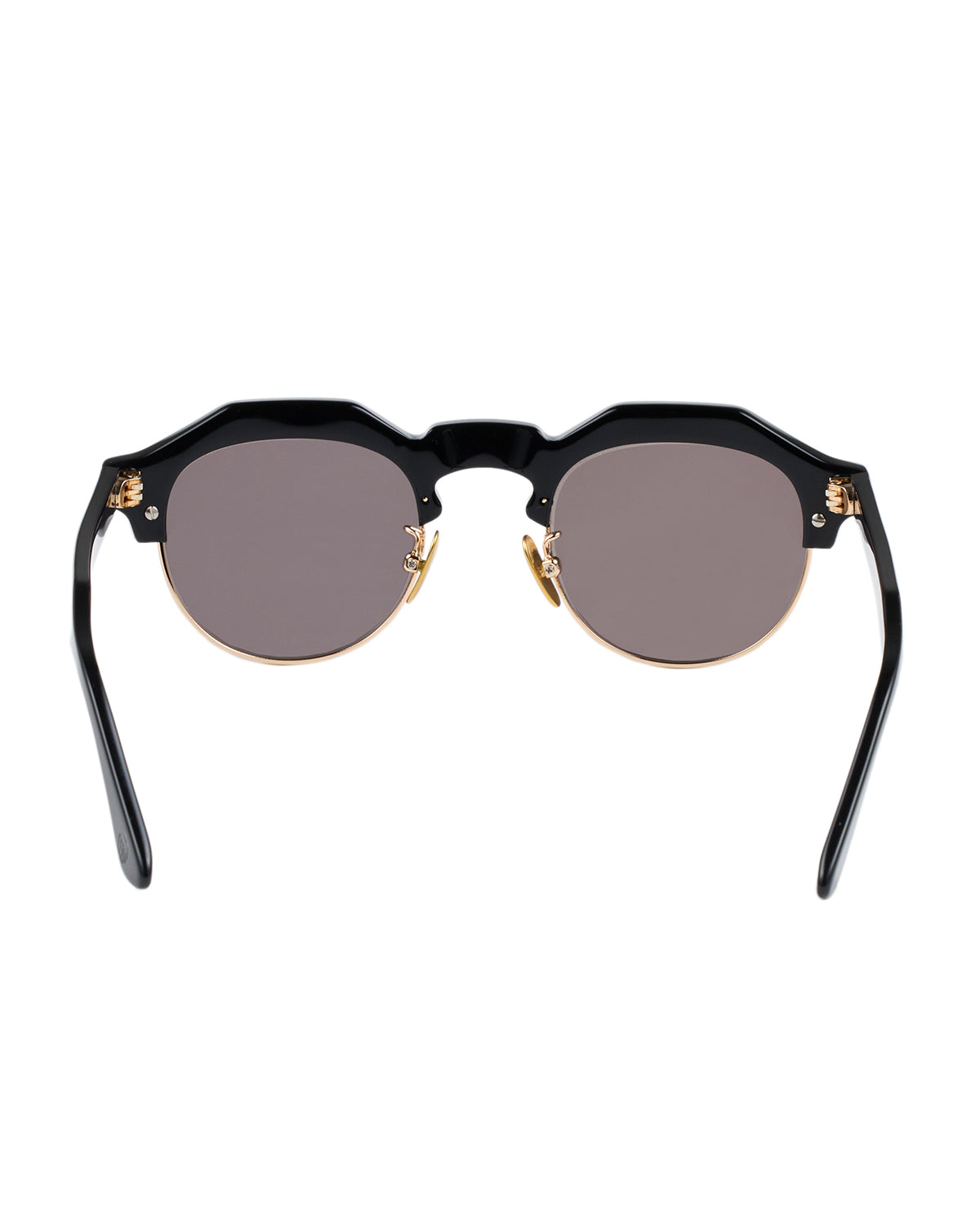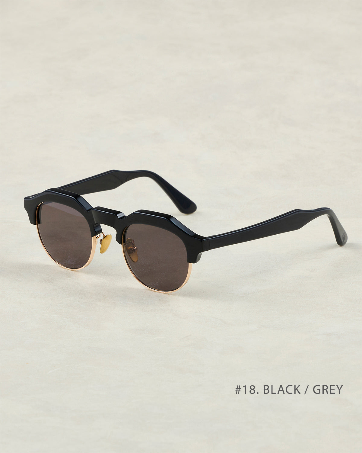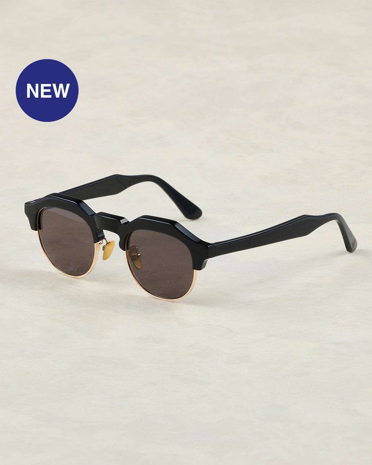 クラウンパント型のブローラインに、彫金を施したアンダーリムを配すことにより、武骨さの中に気品が見える仕上がりに。