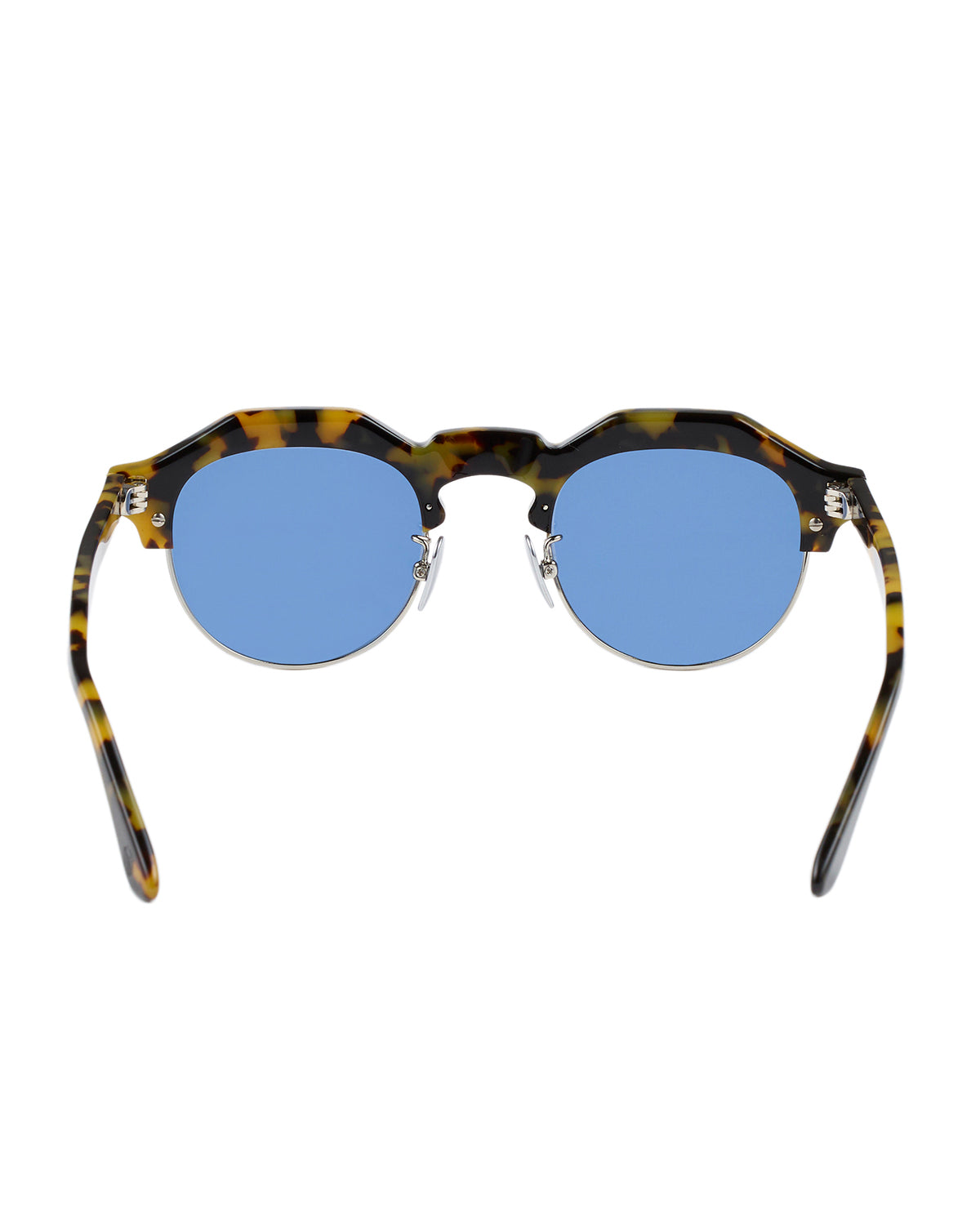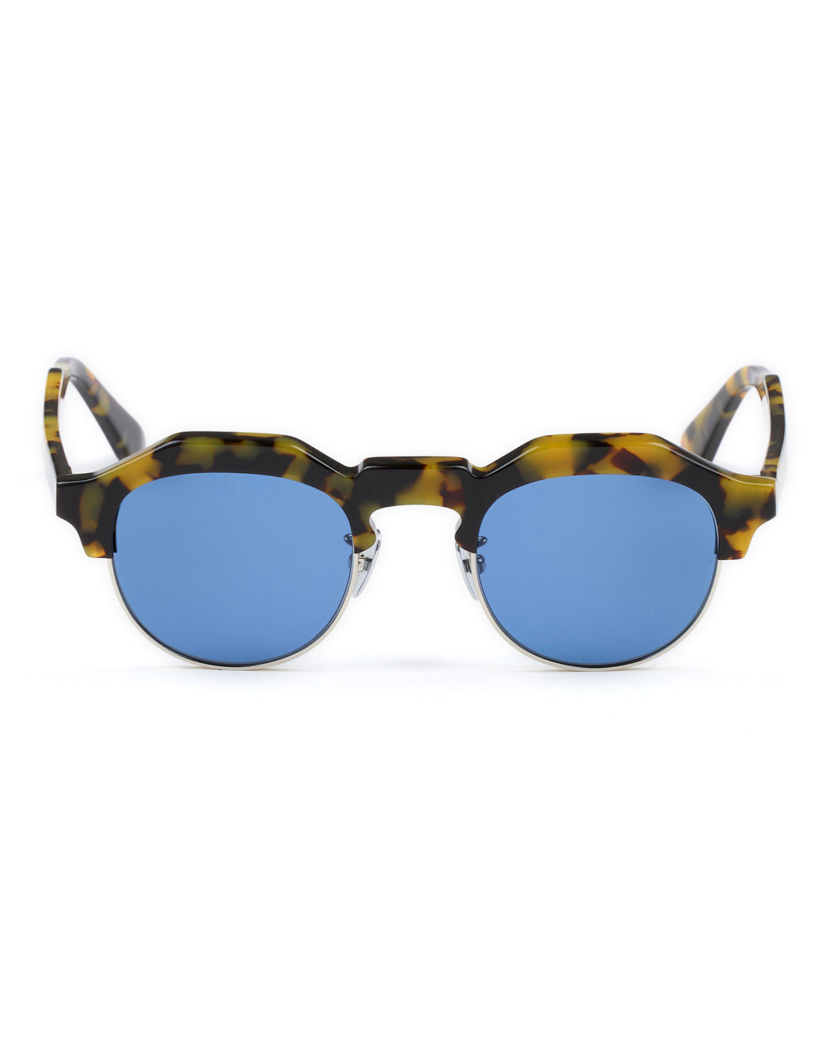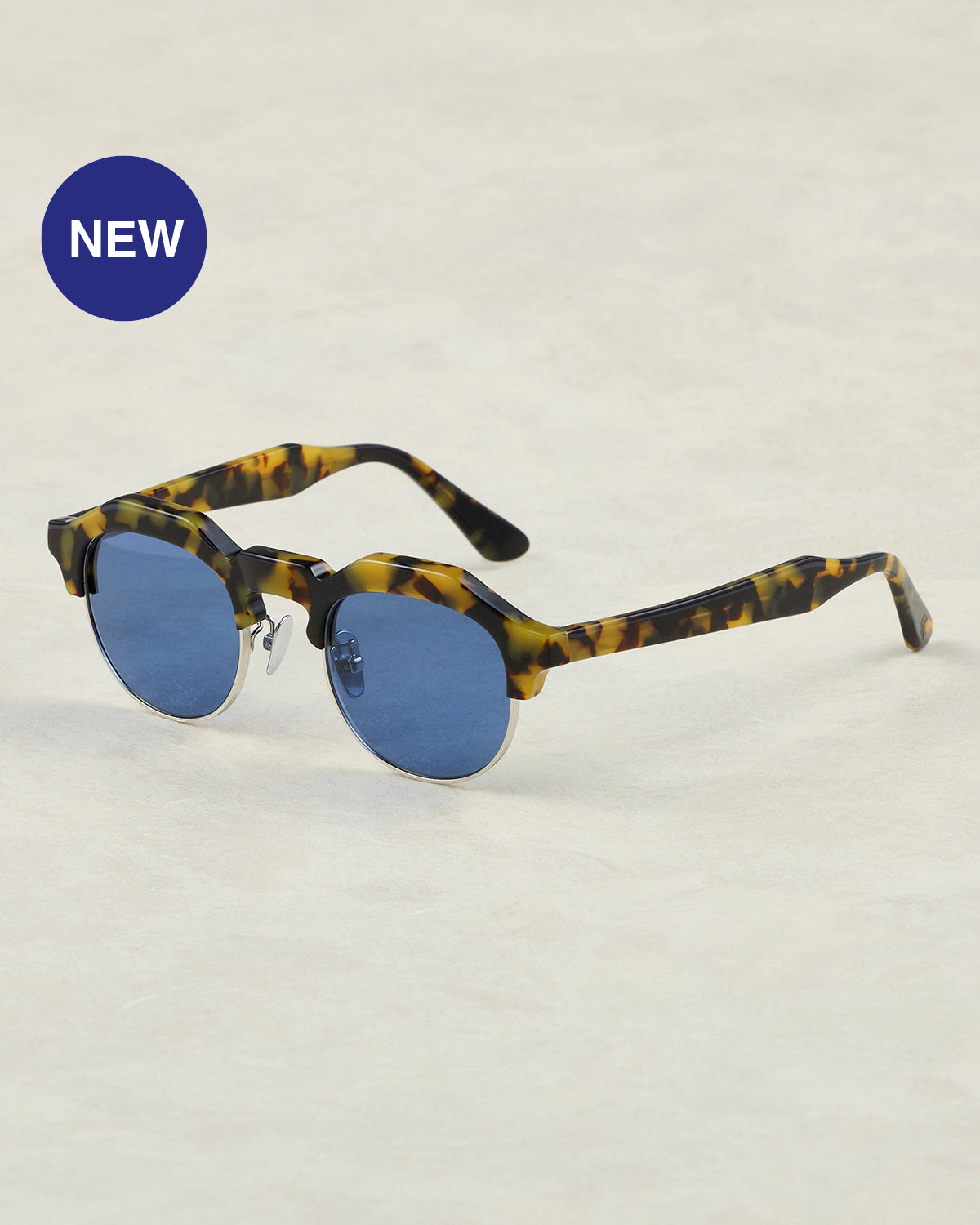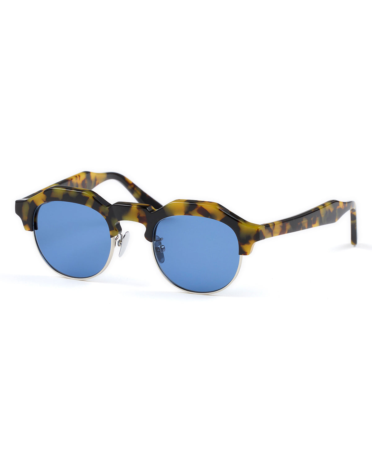 クラウンパント型のブローラインに、彫金を施したアンダーリムを配すことにより、武骨さの中に気品が見える仕上がりに。