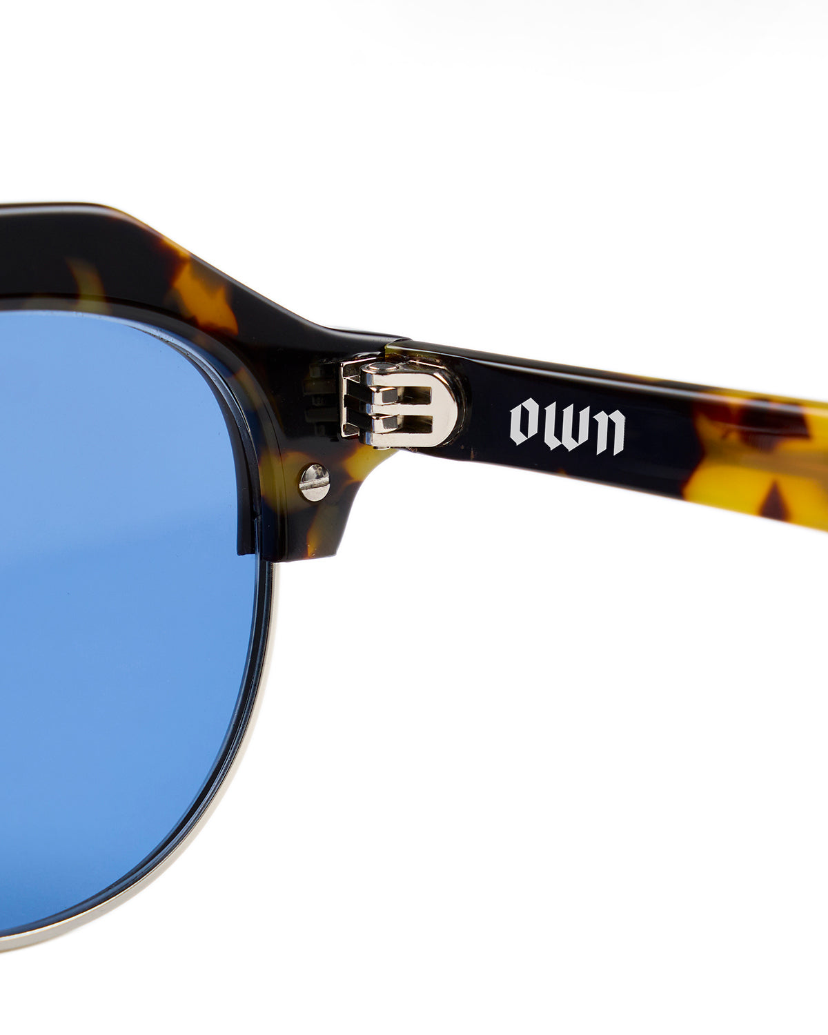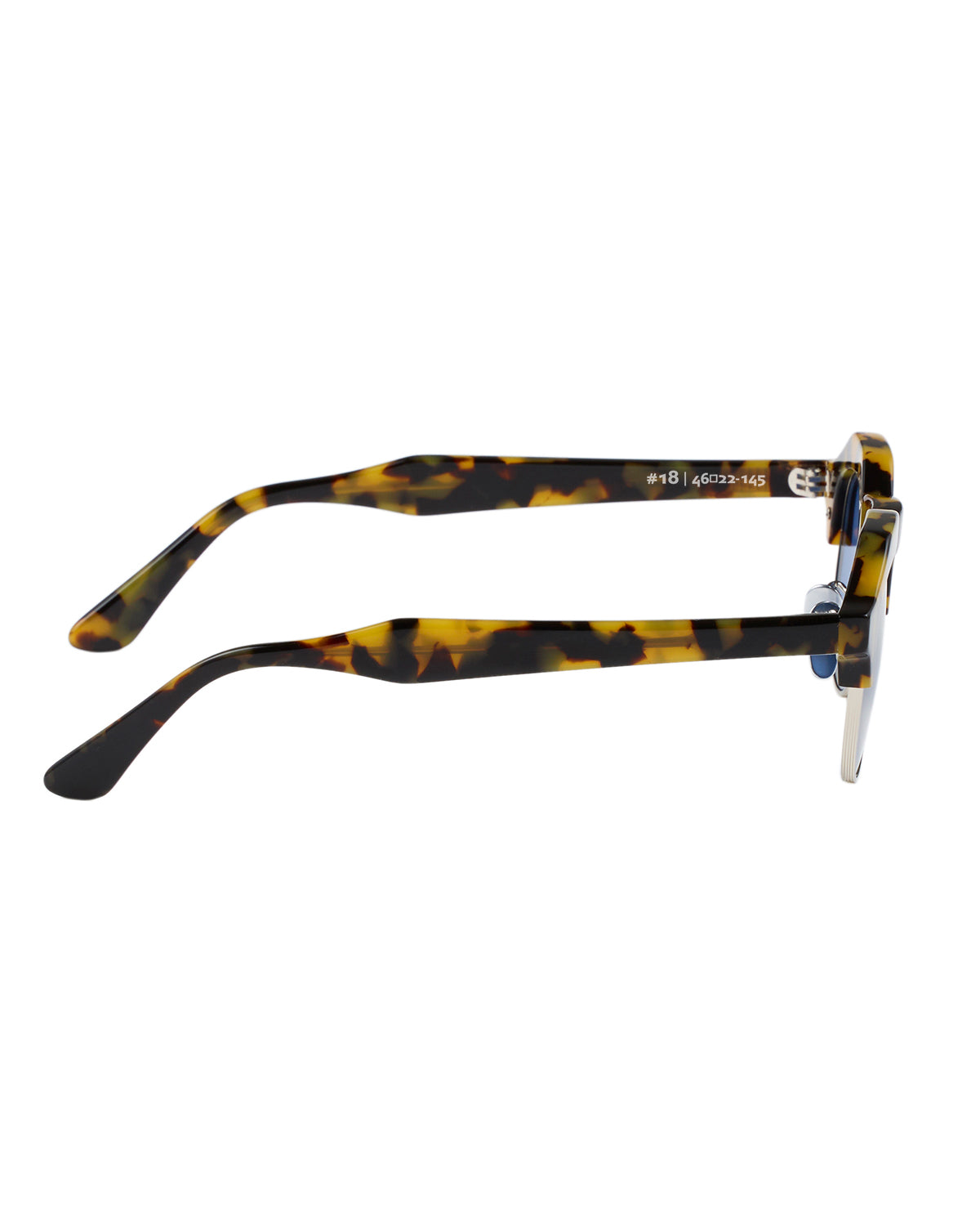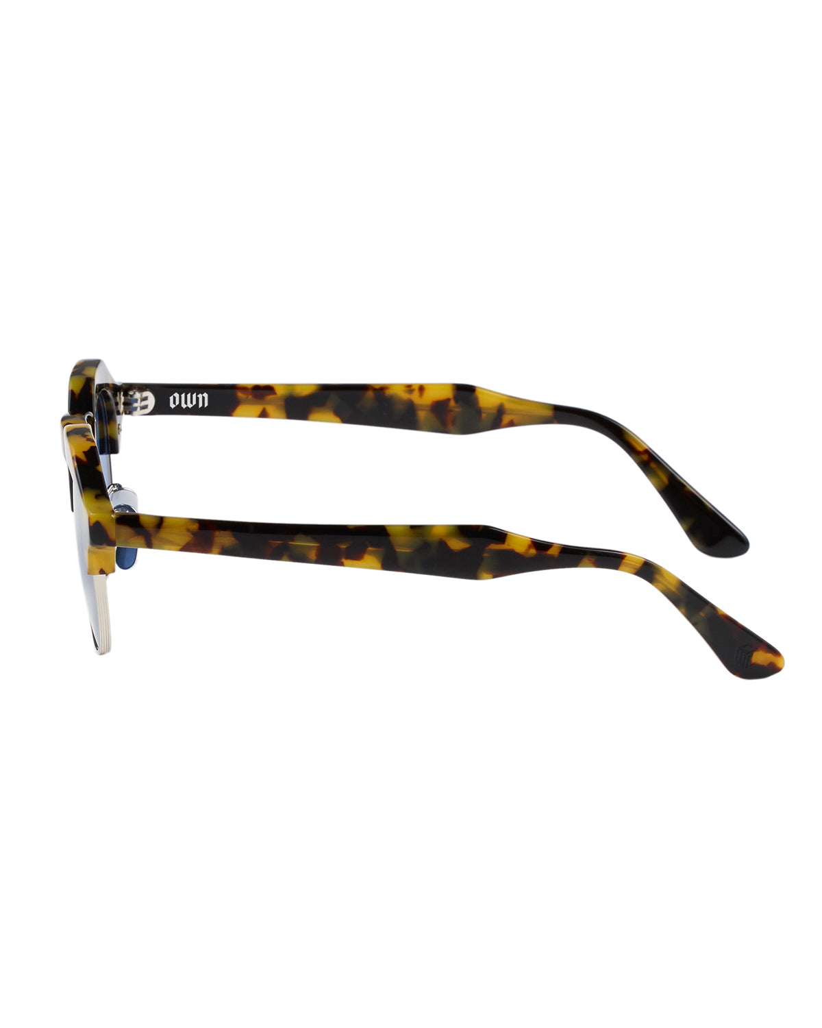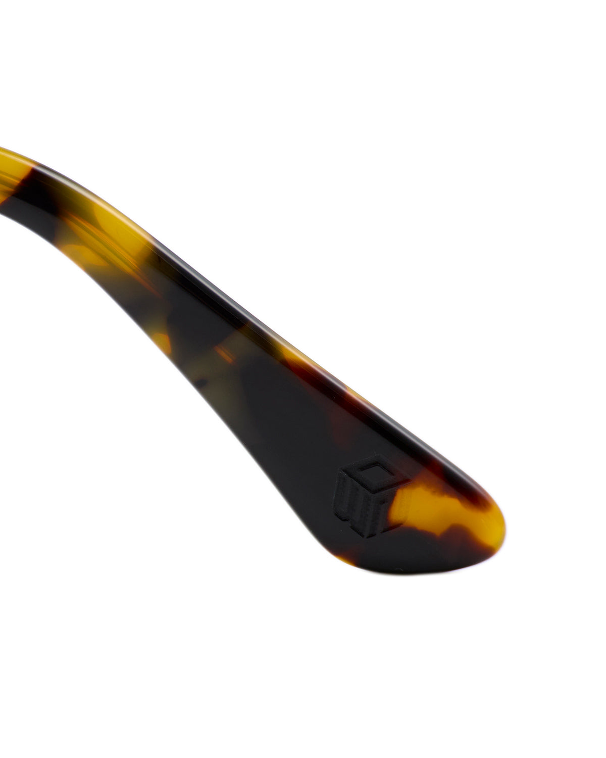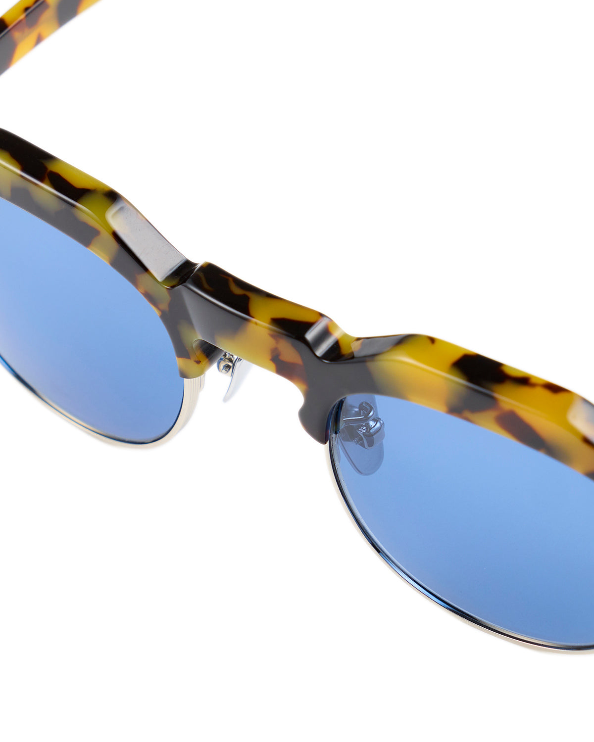 クラウンパント型のブローラインに、彫金を施したアンダーリムを配すことにより、武骨さの中に気品が見える仕上がりに。