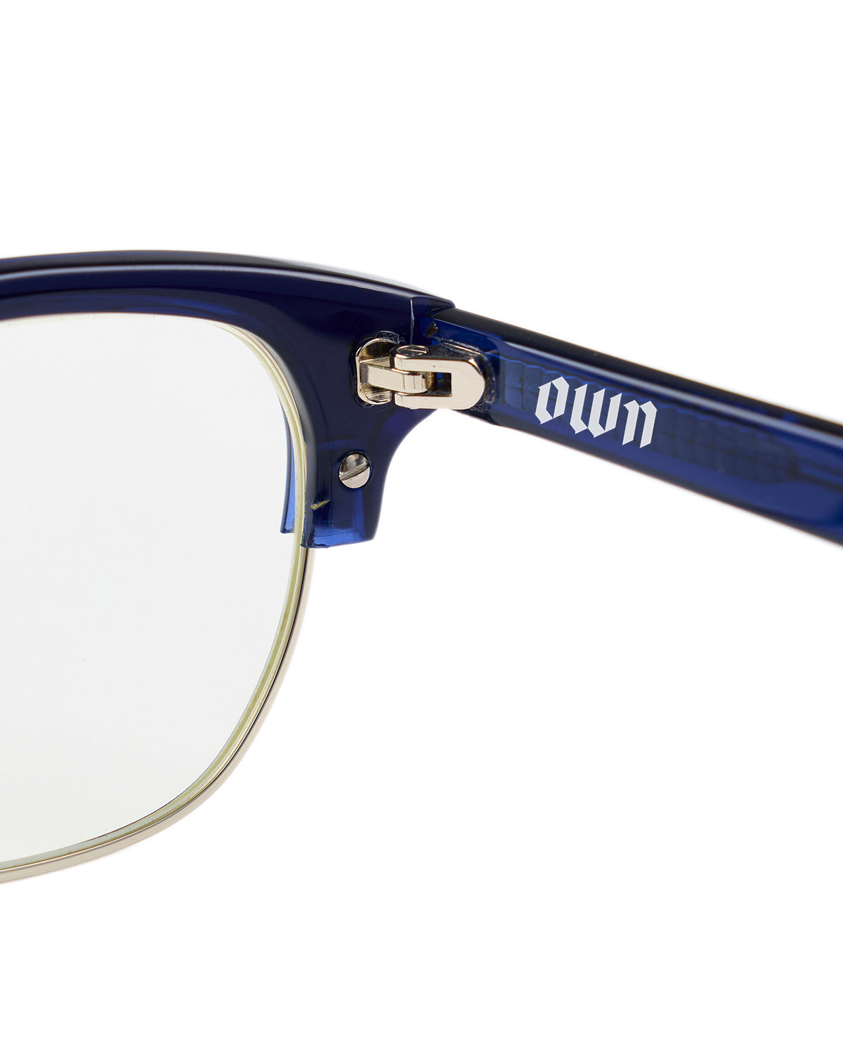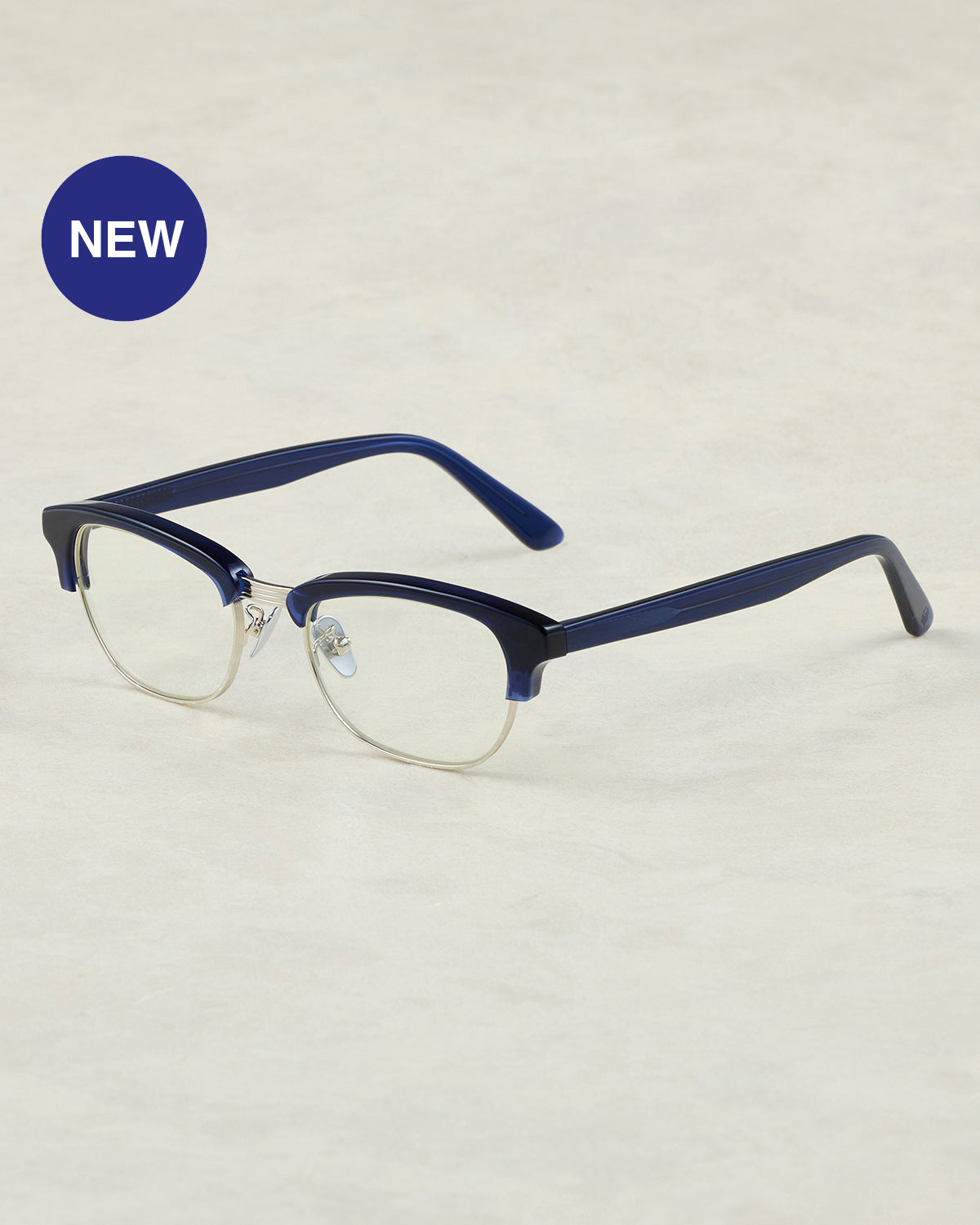 天地幅を抑えたレンズシェイプと、幅広なブリッジを組み合わせたブロウタイプ。