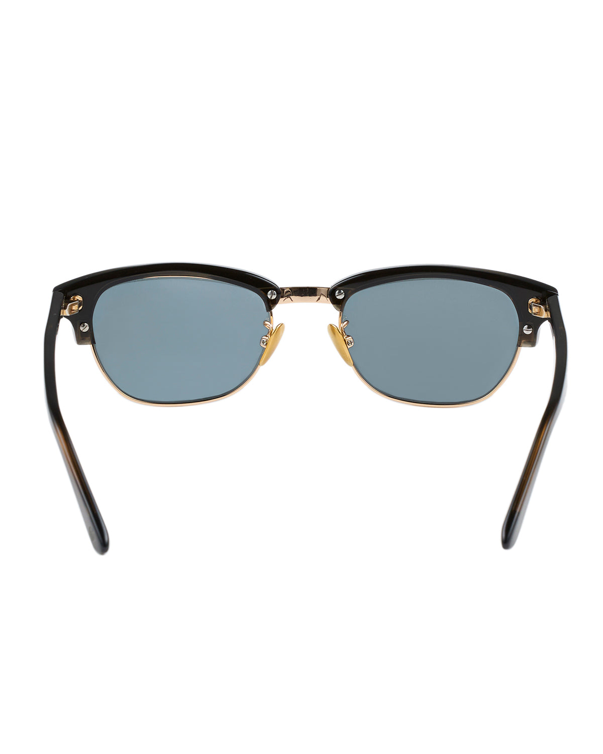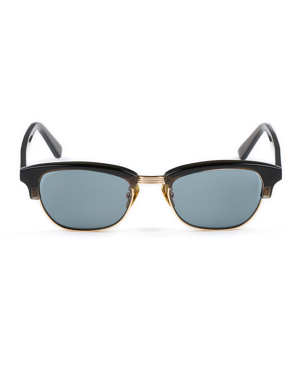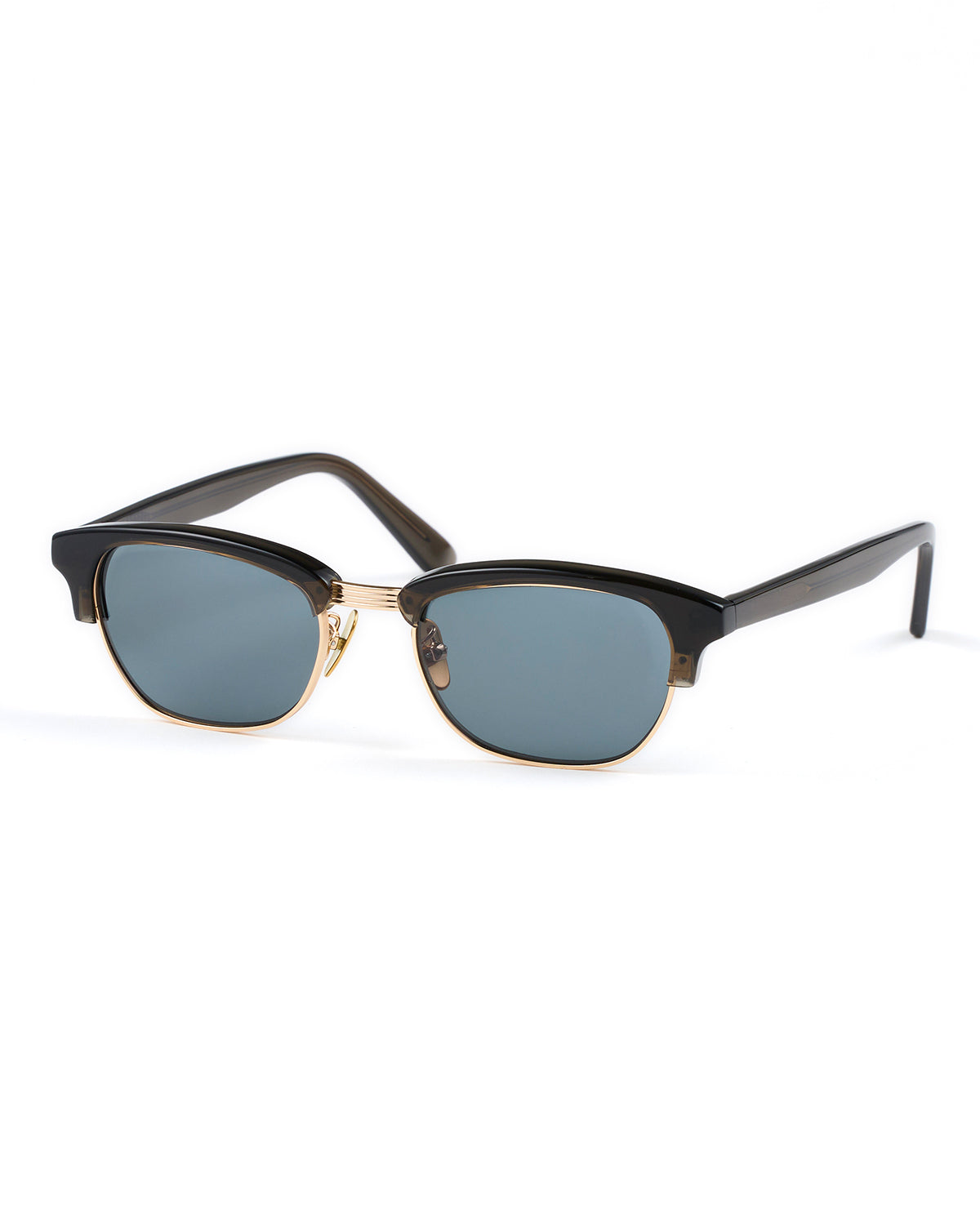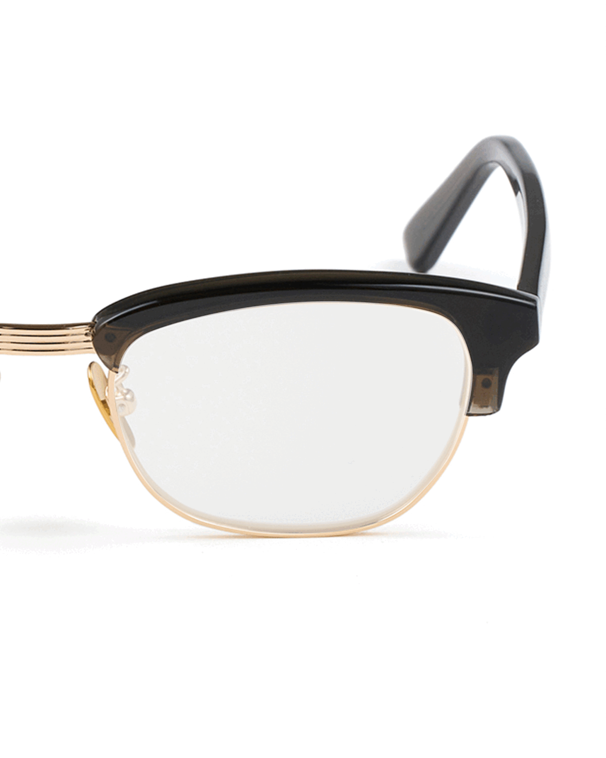 天地幅を抑えたレンズシェイプと、幅広なブリッジを組み合わせたブロウタイプ。